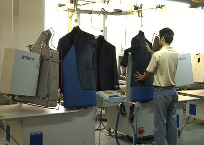 運用高品質的德國BRISAY立模整燙機,采用電腦控制蒸汽輸出量、溫度、壓力、定型、抽濕時間,根據(jù)面料的厚薄、質地、性能,以38種不同整燙程序調(diào)整以上各個參數(shù),配合服裝的整燙。